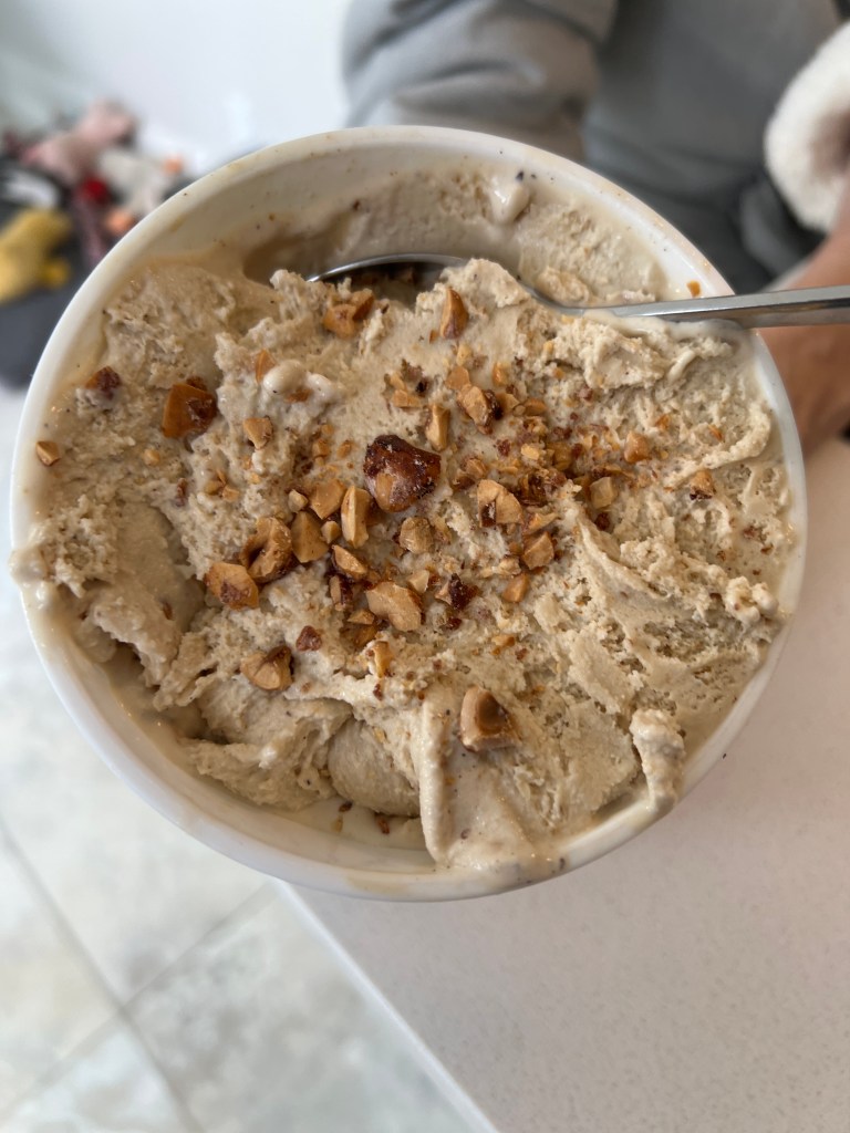 - Chill overnight and churn in a Cuisinart or similar ice cream machine. Add a few chopped roasted nuts for texture and flavour.