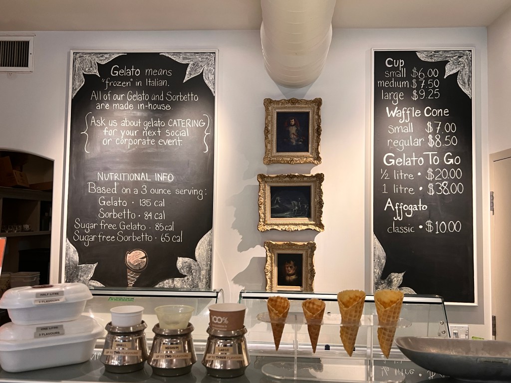 At first all the flavours were written in Italian but after too many, “What is torrone? Is Vaniglia vanilla, Cioccolato chocolate?” the signs came down. By the way, that happened in the Corso Italia, too. Linguists we are not. With hotels like the Windsor Arms and Sutton Place in their background, the founders made the place look like a café that wouldn’t be out of place in Milano. With chandeliers, mirrors, an espresso machine prominently displayed on the counter, not way in back, it had that feeling of Italianità. In addition, there’s really good food and I’d be willing to bet there are many in the area who’ve come again and again for the Quinoa or Niçoise salad or have raved about the incredibly delicious lemon ricotta pancakes that perhaps have never consumed much Hotel gelato. If so, that would be a shame. It’s consistently ranked among TO’s Top Ten gelaterias.