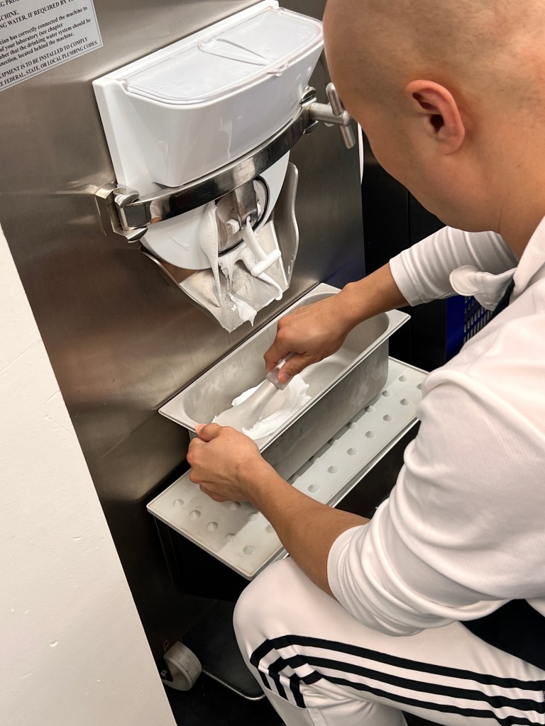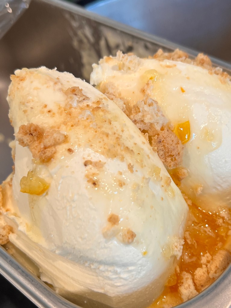“It has the traditional Italian ingredients of Mascarpone and Ricotta cheese,” says Gisella, “And then it’s blended with just the right amount of tart Yuzu and sweetness and is topped with sweet cookie pieces. I can barely keep it in stock.” When Ricardo’s visited, there was just one pint left in the freezer and a tiny bit in the serving tray. Justin was hard at work producing more. It’s one of those flavours that you can’t get enough of, it’s like so sensual. Creamy, tart, and sweet all at once. I just had to bring some home!