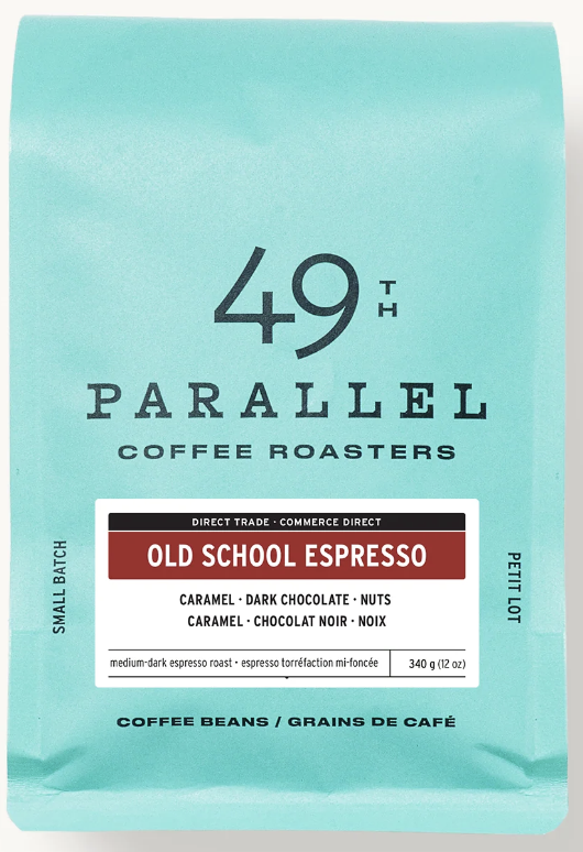My personal favourite is Old School Espresso, described as “Old School Espresso is “49th’s most traditional espresso, with a Pacific Northwest twist! Roasted medium-dark, highlights the sweetness and body of the coffee. Old School is ideal for those who prefer low acidity and full-body, with dark chocolate aromas and flavours of cocoa, caramel, and molasse.”