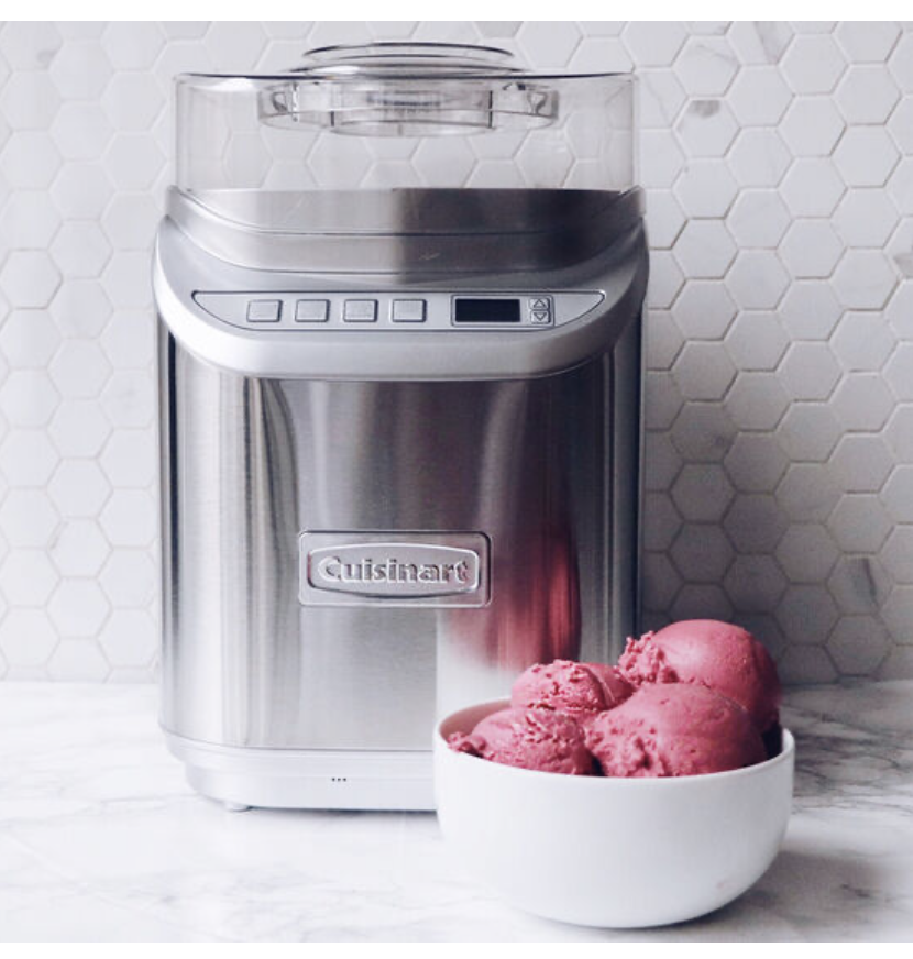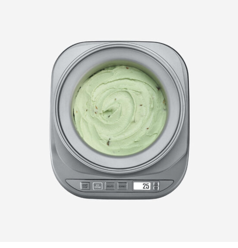 It came with a paddle and a clear top that held down the canister, which is kept in the freezer and then when inserted into the machine churns to freeze the ingredients. Chilling the mix overnight was became an essential step. One of its best features was having three speeds: gelato, sorbet and ice cream.