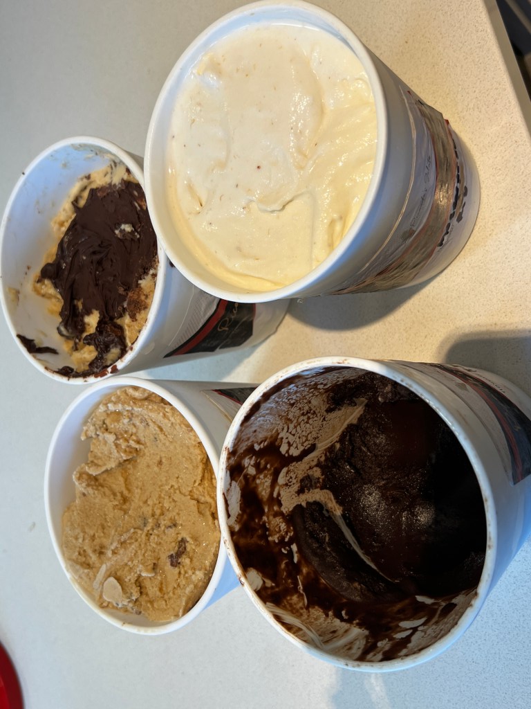 I love my winter flavour line up: dark chocolate, espresso, mascarpone and fig, and peanut butter and chocolate chip. With a multi-cultural feel, there is a light-to-dark contrast, from the chocolate’s deep midnight darkness, the slightly lighter coffee with milk hue of the espresso, along with the brown peanut butter, with its dark chocolate stracciatella.